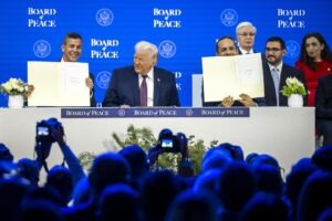 O presidente dos Estados Unidos, Donald Trump, lançou nesta quinta-feira (22) em Davos, na Suíça, seu Conselho de Paz, em uma cerimônia na qual esteve acompanhado por