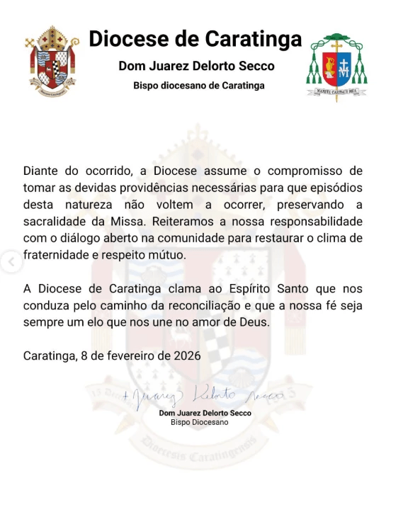 Na nota, a Diocese de Caratinga declarou ainda que vai tomar “as devidas providências necessárias” para que situações como essa não voltem a acontecer.